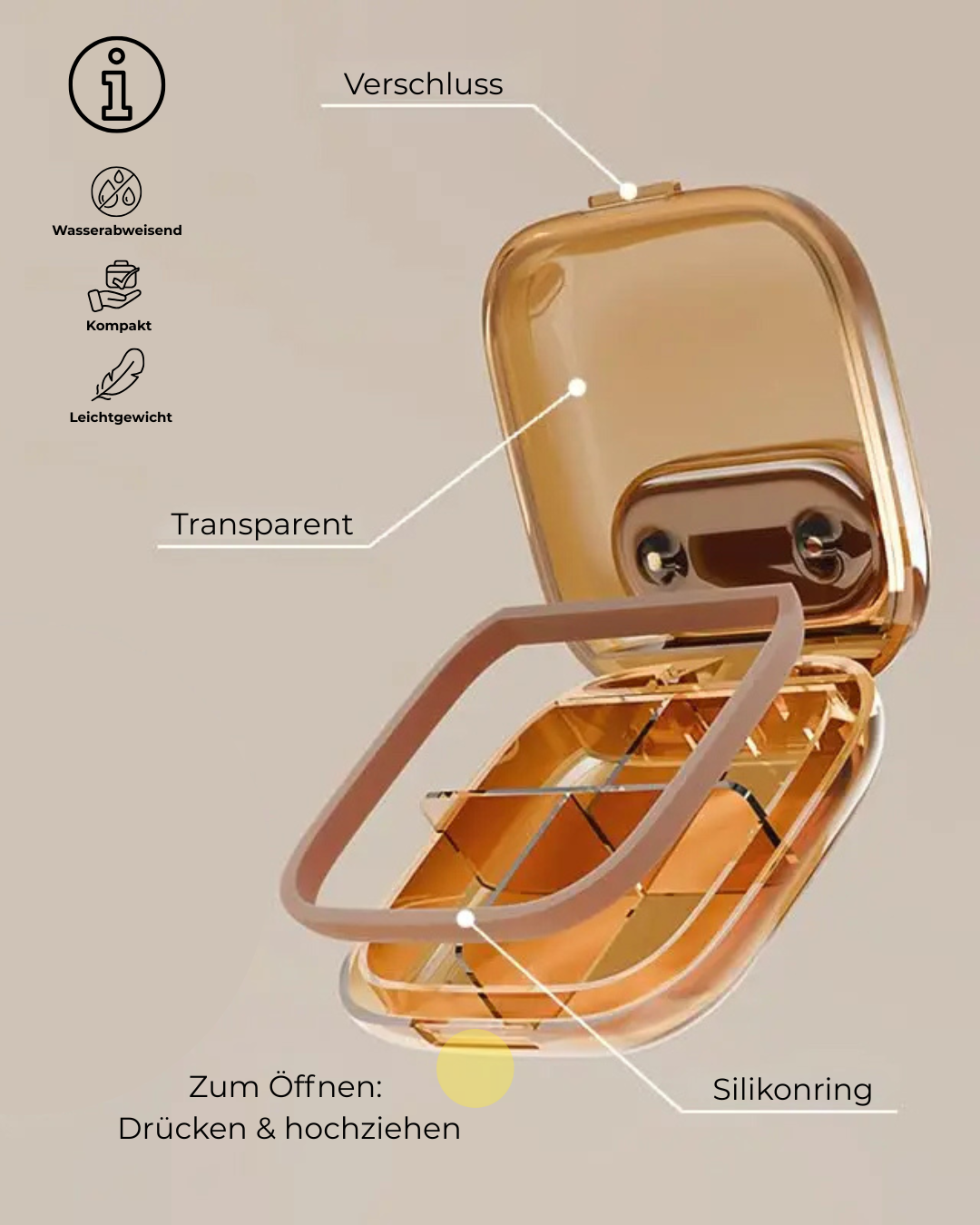 - Zusätzliches Magnetfach im Deckel – perfekt als Quick-Zugriff